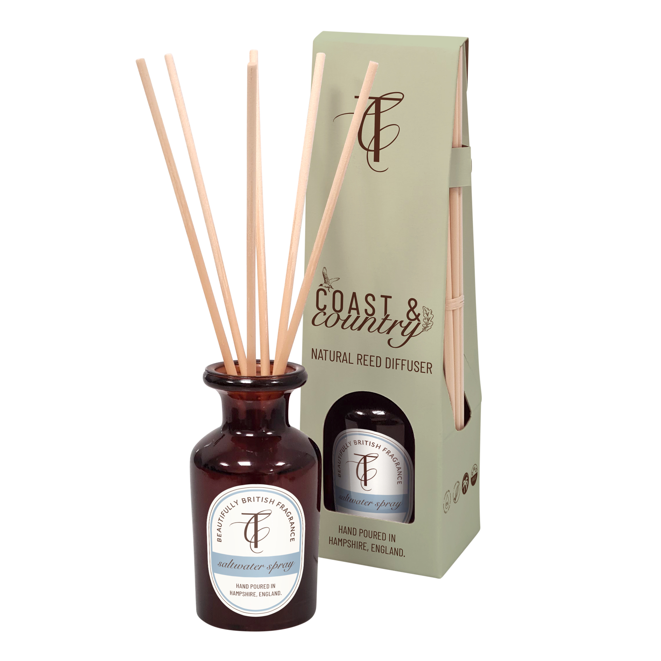 COAST & COUNTRY-Saltwater Spray 100ml Amber Glass Natural Reed Diffuser